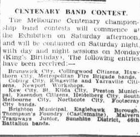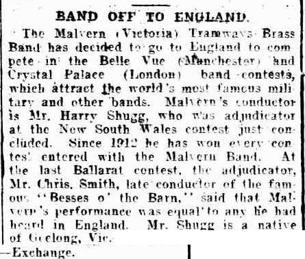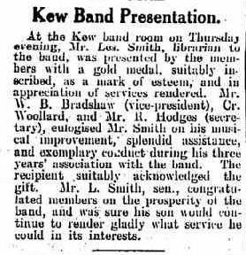 South Caulfield Brass Band. (1927, 15 July). Prahran Telegraph (Vic. : 1889 – 1930), 4. http://nla.gov.au/nla.news-article165185419