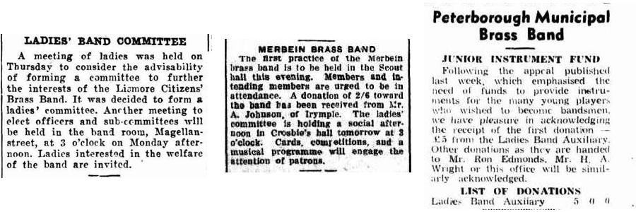 Another band based in the Riverina region of New South Wales voted at their meeting in 1940 to form a ladies’ auxiliary, but it was only mentioned in the minutes with no clear goal as to what this auxiliary should aim for.